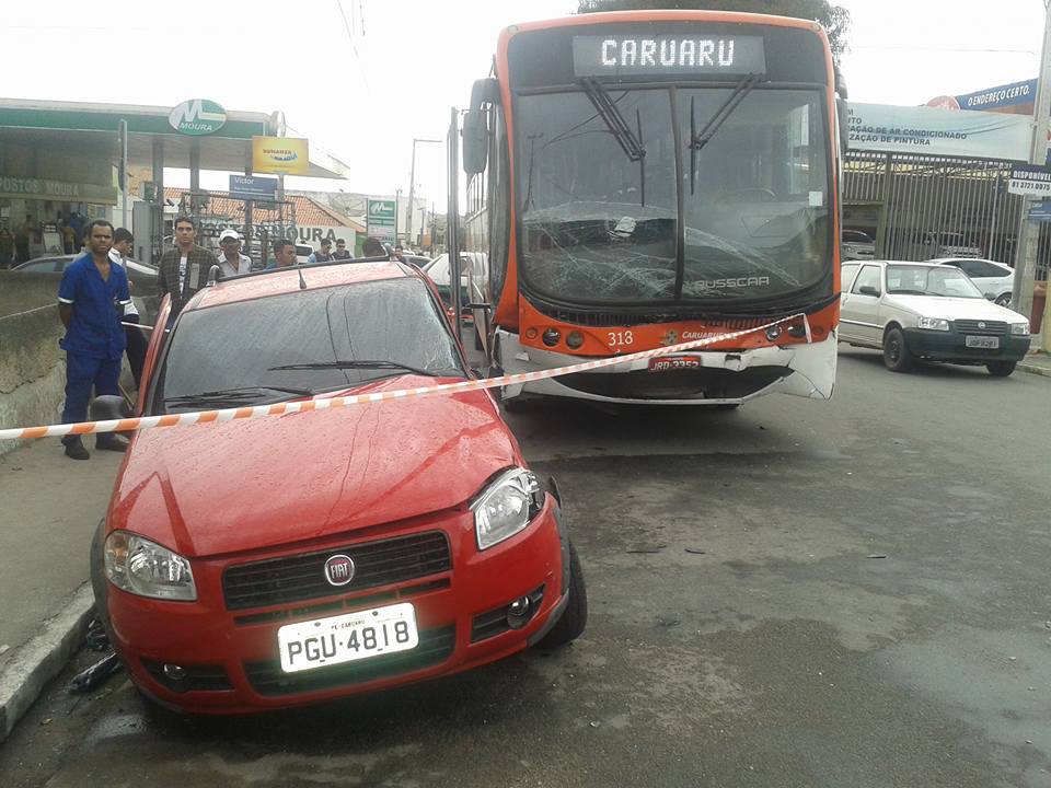 Uma colisão envolvendo um ônibus da empresa Caruaruense, de placas JRD - 2352,