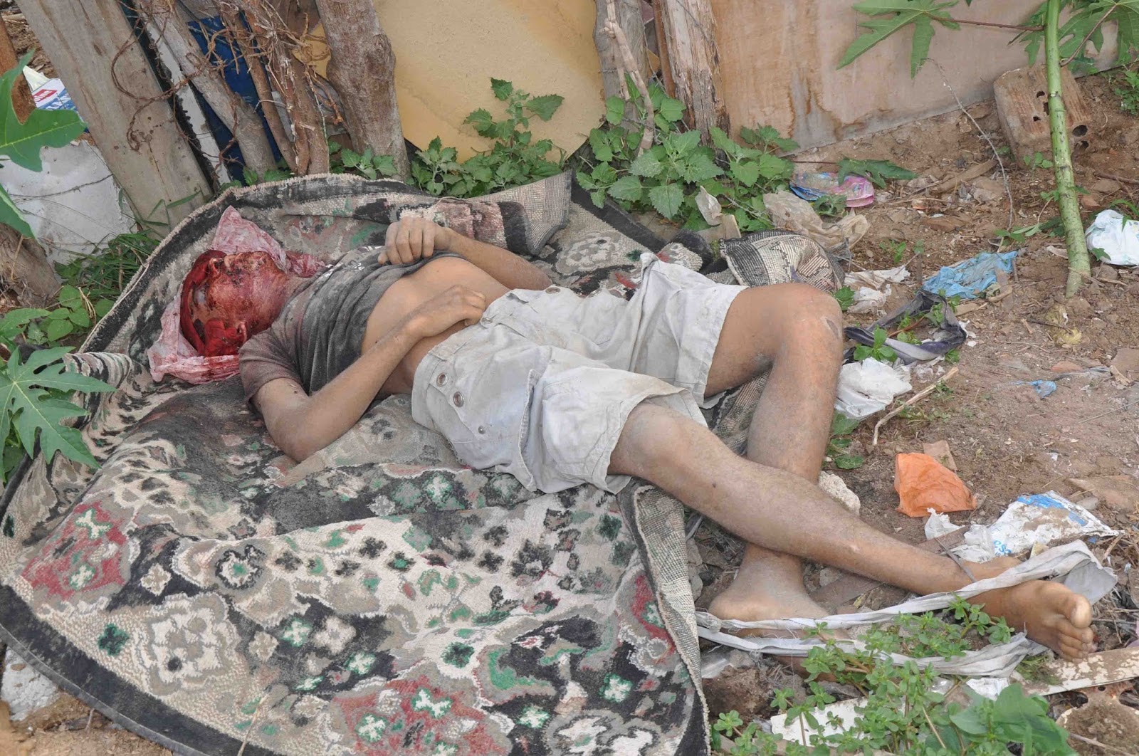 bolsa plástica no rosto em um terreno baldio na Rua Argentina, no distrito de